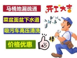 1、管道疏通: 专业疏通各种型号马桶、各类家庭、酒店、公司、学校等单位 的下水道,各类管道、水斗、脸盆、浴缸、水池、地漏、马桶、小便池、化粪池污水管道等疏通清理,清理化粪池淤积堵塞物。 2、下水道疏通...